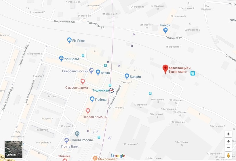 Идет автобус через Ригу, где нужно будет сделать пересадку в другой автобус. Кончается поездка в Москве, на автостанции «Тушинская» (пр-д Стратонавтов, 9).