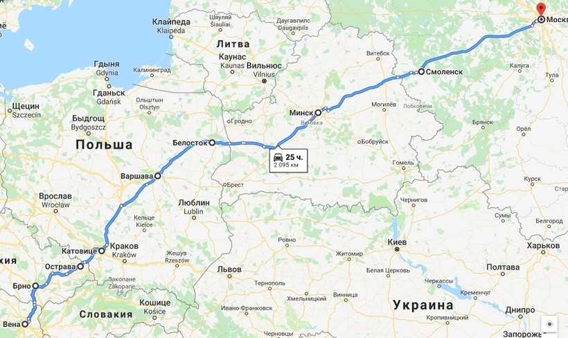 Если вы хотите ехать на арендованной машине, то с этим будут проблемы. Арендовать машину в Вене и уехать на ней в Москву не удастся. Начиная с Польши, машины дают в прокат для перемещения в пределах только одной страны. Проще проделать это путешествие в 2000 км на своей машине.