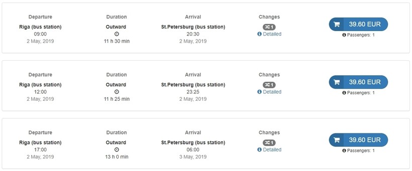 Билет на автобус можно купить за 2650 рублей (36 евро). Такой дешевый (по отношению к стоимости авиаперелета) проезд и является еще одним плюсом данного варианта поездки в Питер.