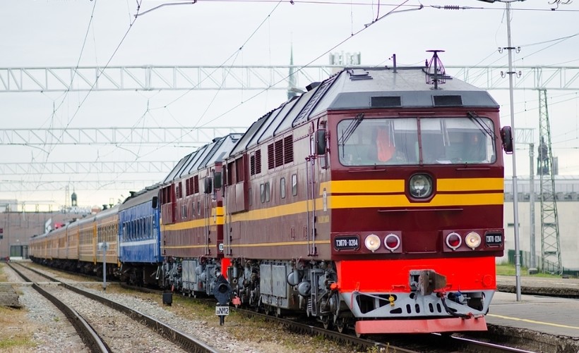Поезд отправляется от железнодорожного вокзала в Риге.