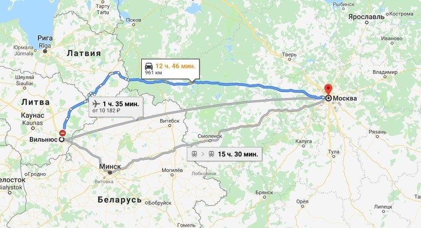Вильнюс — Москва — маршрут на карте