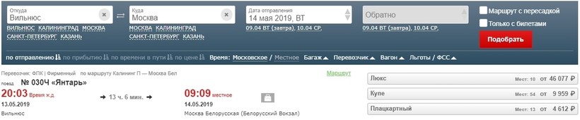 Из Вильнюса в Москву на поезде