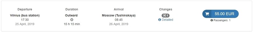Ниже приведена информация о том, сколько часов вам потребуется, чтобы добраться от Вильнюса до Москвы, а также приведена примерная стоимость проезда (средняя цена билета) на том или ином виде транспорта.