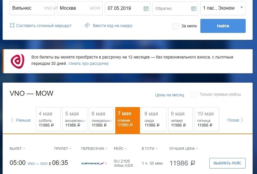 Из Вильнюса в Москву на самолете
