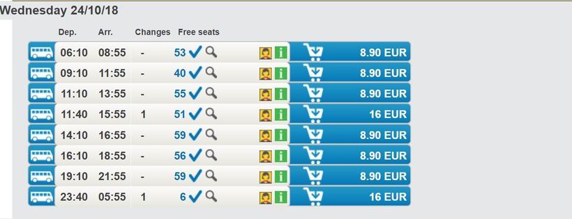 В среднем в пути нужно будет провести без малого 3 часа. Поезда, в принципе, обеспечивают приемлемый уровень комфорта, но поскольку билет на поезд стоит дороже чем на автобус, то я думаю, что он будет скорее страховочным вариантом, нежели основным.