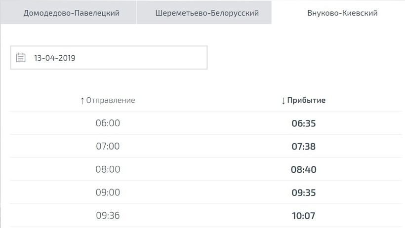 Аэроэкспрессы из Внуково идут на Киевский вокзал, а из Домодедово — на Павелецкий. Стоимость билета от 450 рублей.