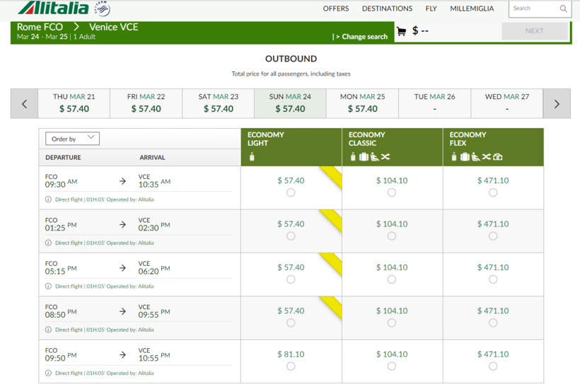 Ниже приведена информация о том, сколько часов вам потребуется, чтобы добраться от Рима до Венеции, а также приведена примерная стоимость проезда (средняя цена билета) на том или ином виде транспорта.