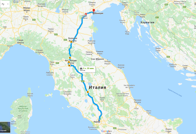 Расстояние между Римом и Венецией 526 км, такое путешествие на машине займет примерно 5,5 - 6 часов. Дороги новые, пейзажи потрясающие, ехать одно удовольствие! Однако, этот вариант путешествия один из самых дорогостоящих, об этом расскажу ниже.