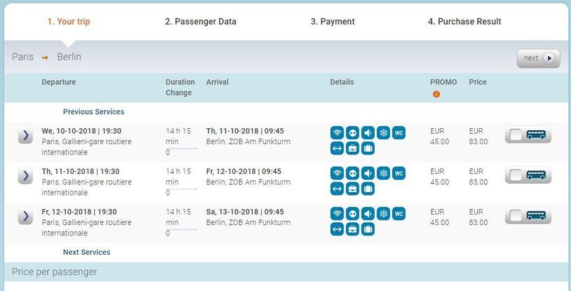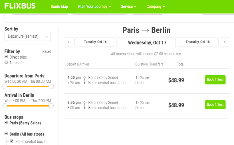 Теперь про рейсы Flixbus. У этой компании прямых рейсов тоже мало, обычно он только 1 в день. Но бывает и по 2: