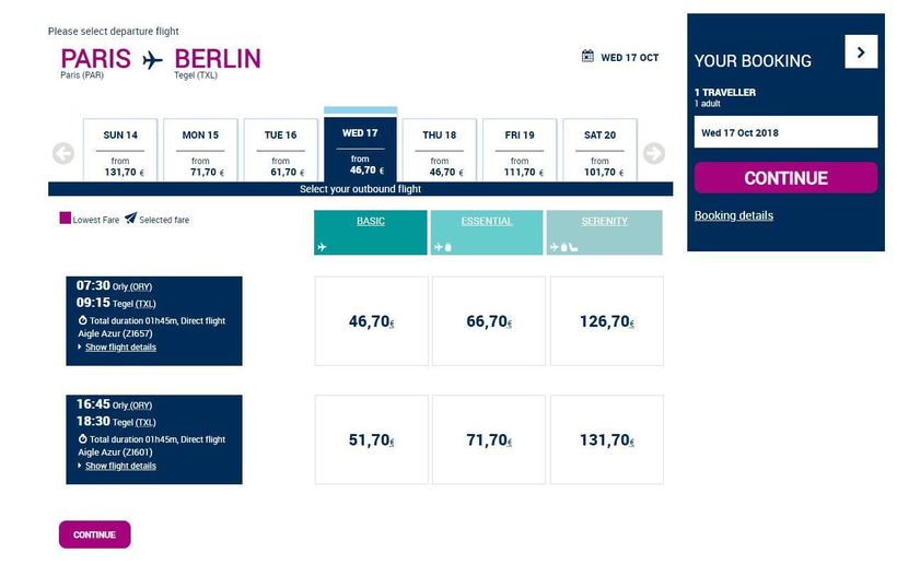 Еще одна авиакомпания, самолёты которой летают из аэропорта Орли — это Aigle Azur. Вот скриншот с её сайта:
