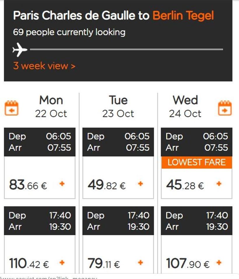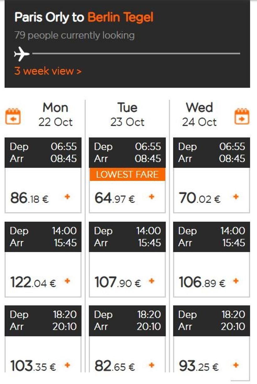 Из второго аэропорта — Орли, летают самолёты компании EasyJet (к слову сказать, ее рейсы есть и из аэропорта Шарль де Голль). Скриншоты с расписанием: