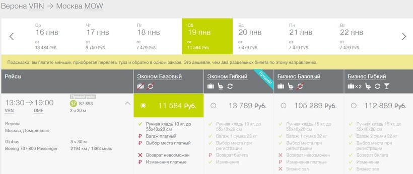 Из Вероны в столицу РФ летает не так много прямых самолетов. Есть один от S7.