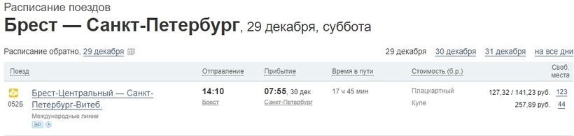 Далее ждет ночевка, комнаты отдыха есть даже на вокзале. Затем рейс из Бреста в Питер.