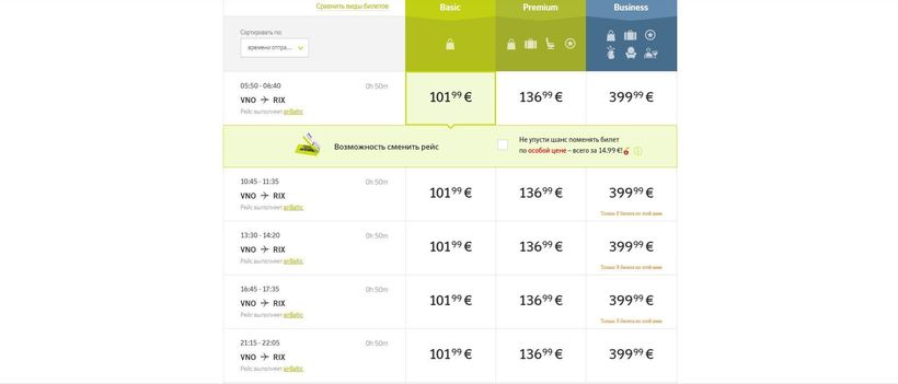 Несмотря на относительно небольшое расстояние между двумя столицами, между ними есть довольно регулярное авиационное сообщение благодаря самолётам компании AirBaltic. Вот скриншот с её официального сайта: