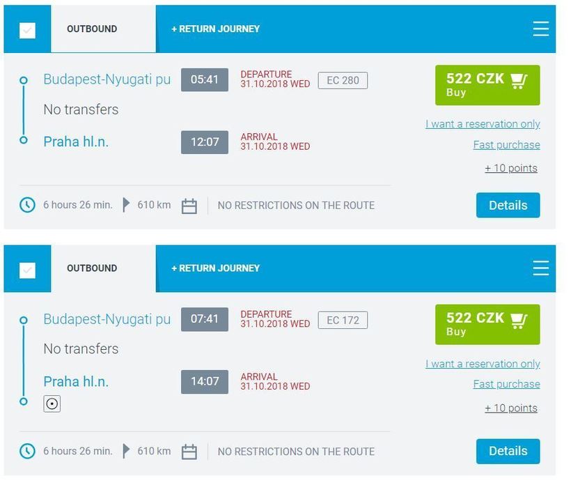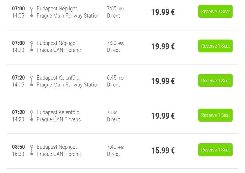 Можно добраться из венгерской в чешскую столицу и на поезде. Вот скриншот с частью расписания поездов: