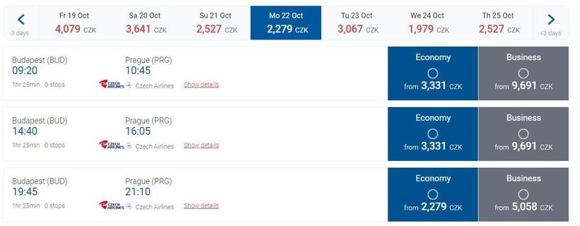 Прямые авиарейсы предлагают 2 авиакомпании. Первая это Czech Airlines, вот скриншот расписания её рейсов с официального сайта: