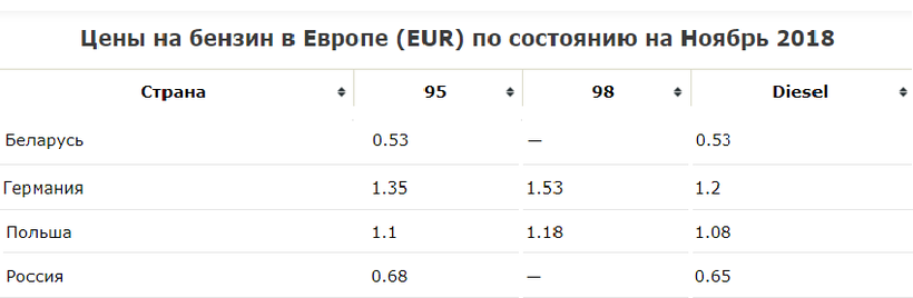 Стоимость бензина: