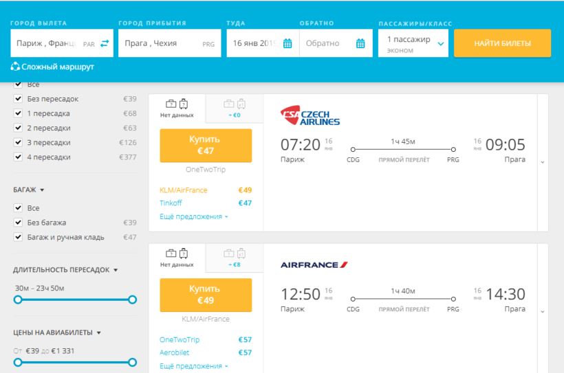 Авиабилеты Париж – Прага