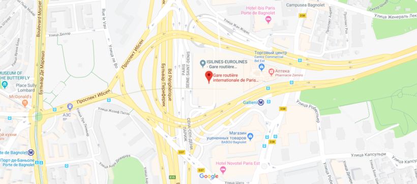 Отправляются эти автобусы с автовокзала Gallieni, который находится вот здесь: