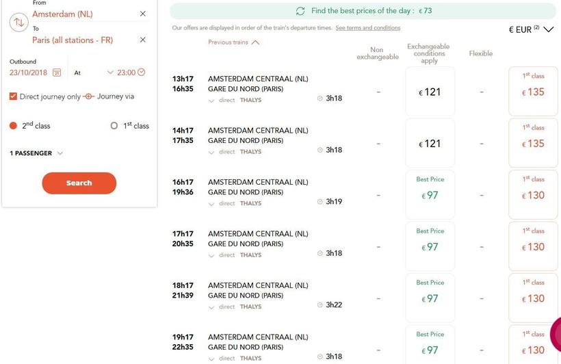 Сразу скажу: билеты лучше покупать на сайте французских железных дорог. Дело в том, что на сайте голландских железных дорог купить билет можно только с помощью карты, выпущенной голландским банком. Это будет вряд ли удобно для большинства путешественников.