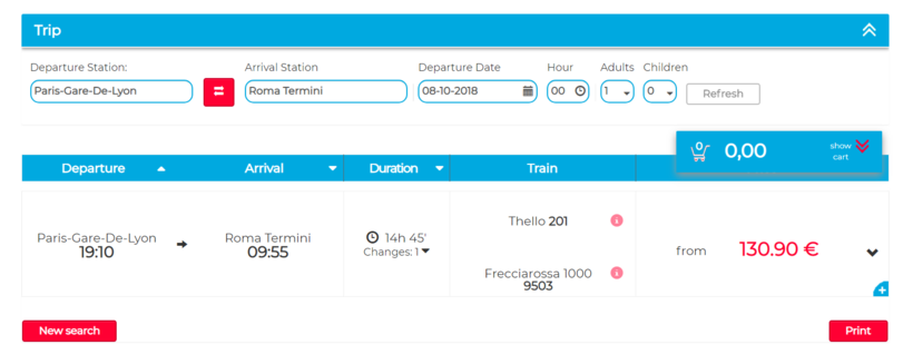 Скоростной поезд Thello: тут же всего один вариант с одной пересадкой: