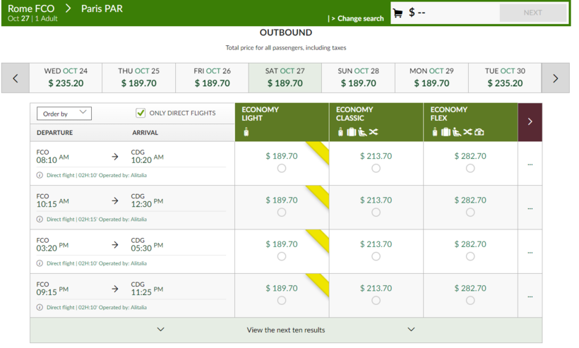 Есть два регулярных прямых рейса из Рима в Париж — утренний и ночной.