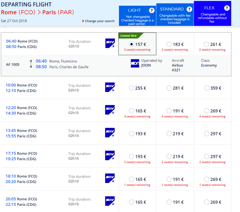 - Joon (AirFrance) — от 157.00 евро.