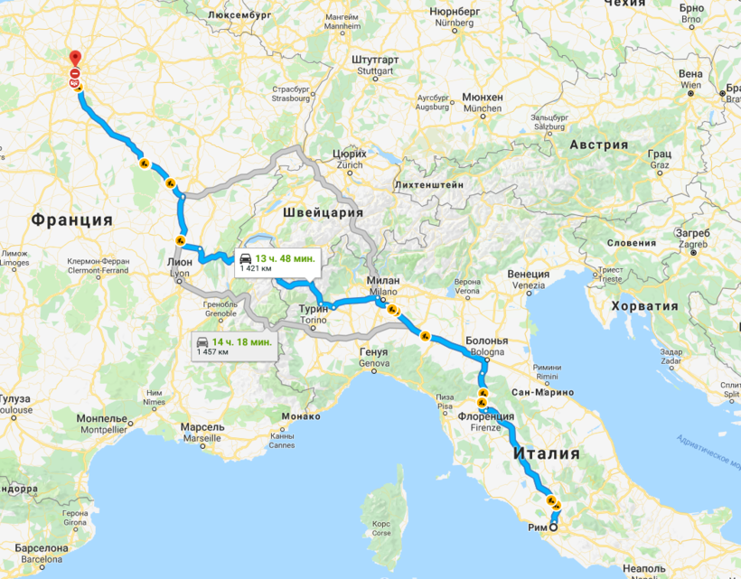По Европе, конечно, путешествовать дорого, но, я думаю, оно того стоит! К тому же, когда вы едете на машине и можете останавливаться там, где хотите и сколько хотите, здорово же! Можете также проехать через территорию Швейцарии и насладиться прекрасными здешними видами. Расстояние между Римом и Парижем примерно 1421 км, закладывайте на дорогу около 15 часов. Теперь о подробностях такого путешествия.