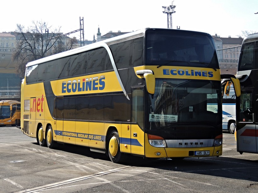 Автобусное сообщение между городами тоже есть, обеспечивается автобусами Ecolines. Окраска у них вот такая: