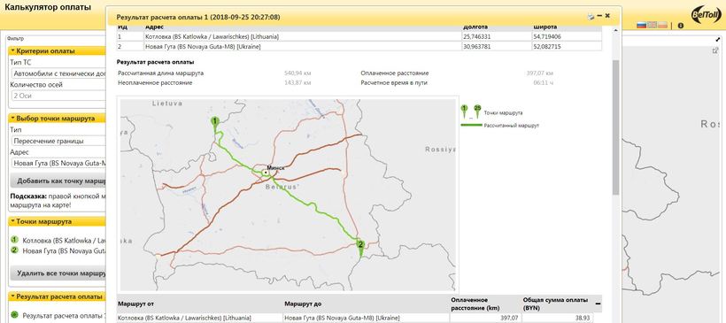 Стоимость проезда по платной дороге составит почти 39 беларусских рублей, что составляет около 16 евро.