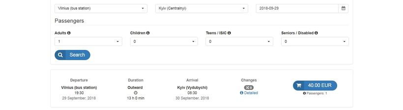 Ниже приведена информация о том, сколько часов вам потребуется, чтобы добраться от Вильнюса до Киева, а также приведена примерная стоимость проезда (средняя цена билета) на том или ином виде транспорта.