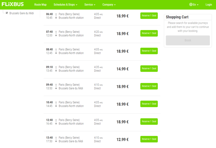 У меня было много свободного времени на дорогу, но не так много денег на покупку билета, что делать в этом случае? :) Покупать билет на автобус, к тому же в Европе они все большие, комфортные, и, когда откинешь спинку кресла назад, можно и поспать. Маршрут из Парижа в Брюссель обслуживают три международных автобусных компании:
