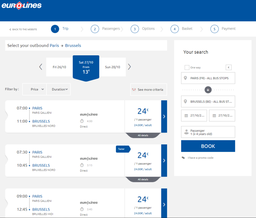 - Eurolines – самая низкая цена 13.00 евро, средняя цена 18.00 евро.