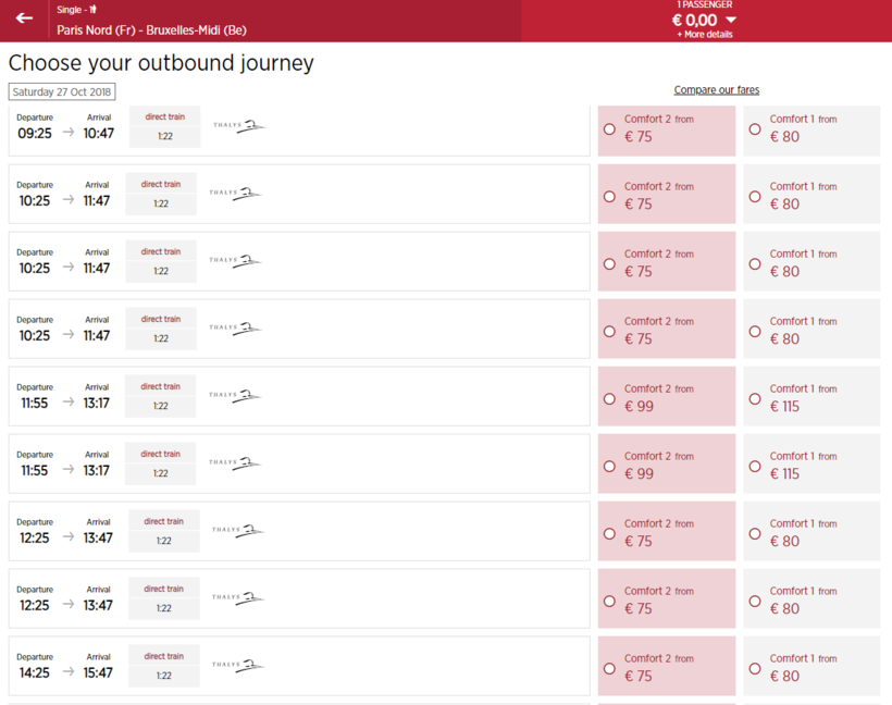 Самый оптимальный способ для тех, кто хочет побыстрее добраться в место назначения. По этому маршруту ходят скоростные поезда Thalys.