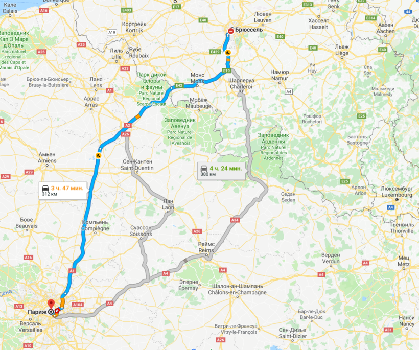 Мой любимый способ путешествия, особенно с большой компанией! Из Парижа в Брюссель можно доехать чуть меньше, чем за четыре часа, расстояние 310 км.