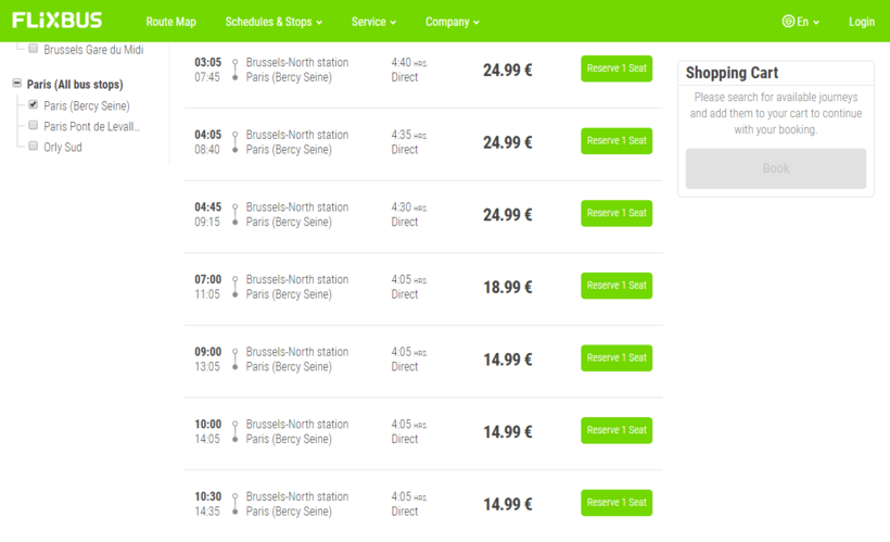 Как видите, у Flixbus цена на билет начинается от 14.99 евро.