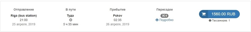 Ниже приведена информация о том, сколько часов вам потребуется, чтобы добраться от Риги до Пскова, а также приведена примерная стоимость проезда (средняя цена билета) на том или ином виде транспорта.