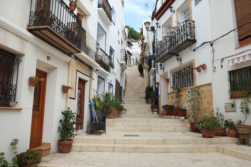 Дорога к замку Санта Барбары идет через белоснежный район Санта Крус. Узкие мощеные улицы остались от эпохи правления мавров в XIII веке. Сейчас в Санта Крус живут художники, которые продают свои поделки прямо на ступенях домов.