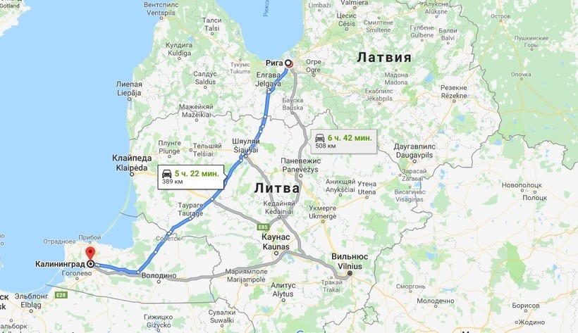 Маршрут поездки можно составлять по-разному, возьмите в дорогу навигатор или просто загрузите в смартфон карту. Ехать придется через территорию Латвии, Литвы и Калининградской области.