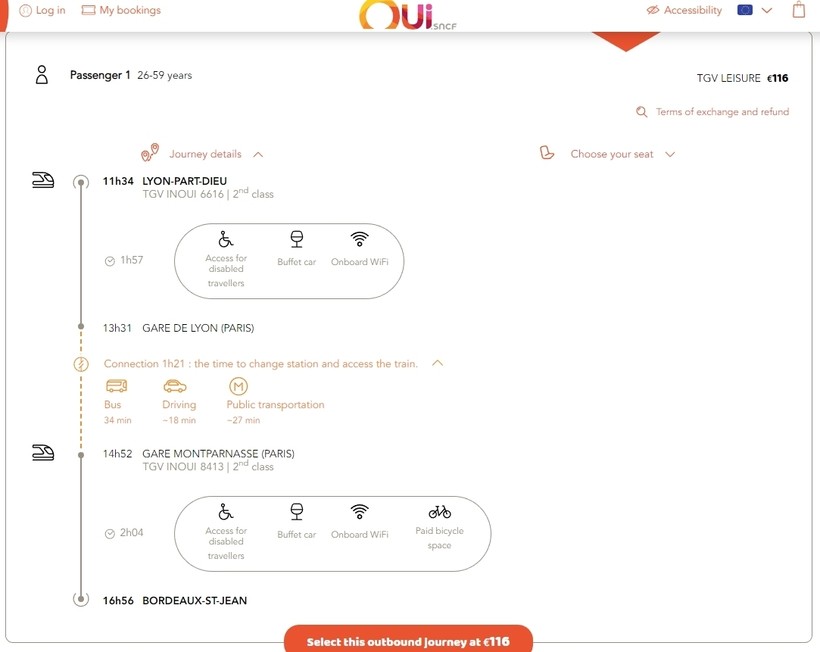 Добраться таким транспортом из Лиона в Бордо можно за 6 часов (в зависимости от количества и продолжительности остановок по пути).