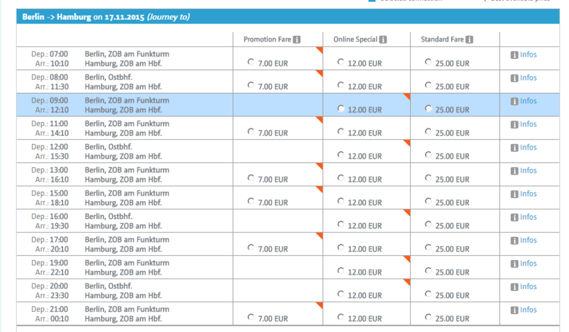 Вот за что я люблю транспорт Германии, так это что у них все очень просто и доступно. Захотел забронировать билет? Зашел на официальный сайт, даже не зная языка, ввел свои данные и вуаля! Вот понятное расписание на необходимый тебе день.