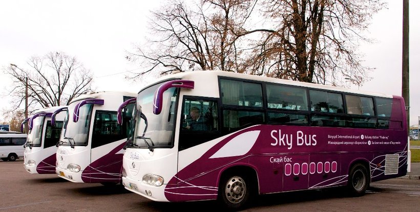 Автобусом. От всех терминалов через промежутки 20 минут ездят автобусы Sky Bus. Билеты можно заказать на сайте: http://skybus.kiev.ua или купить в кондуктора. Цена – 37 грн. Едут автобусы до станции метро «Харьковская».