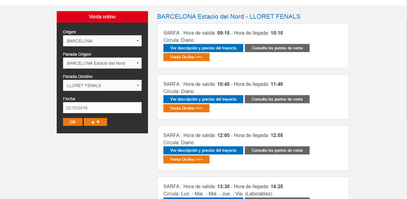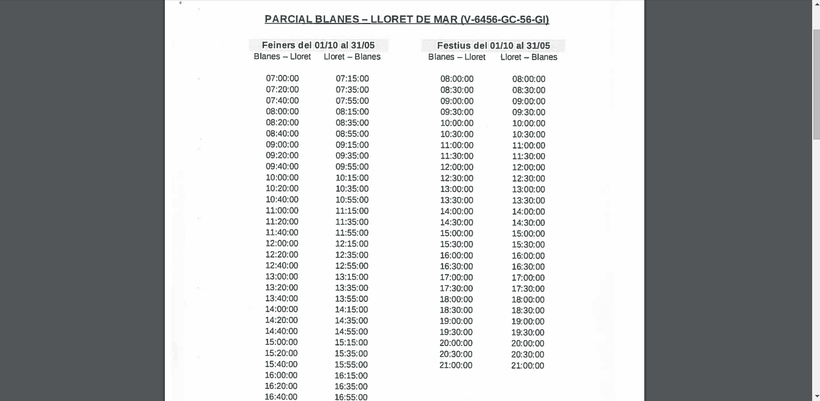 А вот, что представляет из себя расписание автобусов из Blans в Ллорет Де Мар