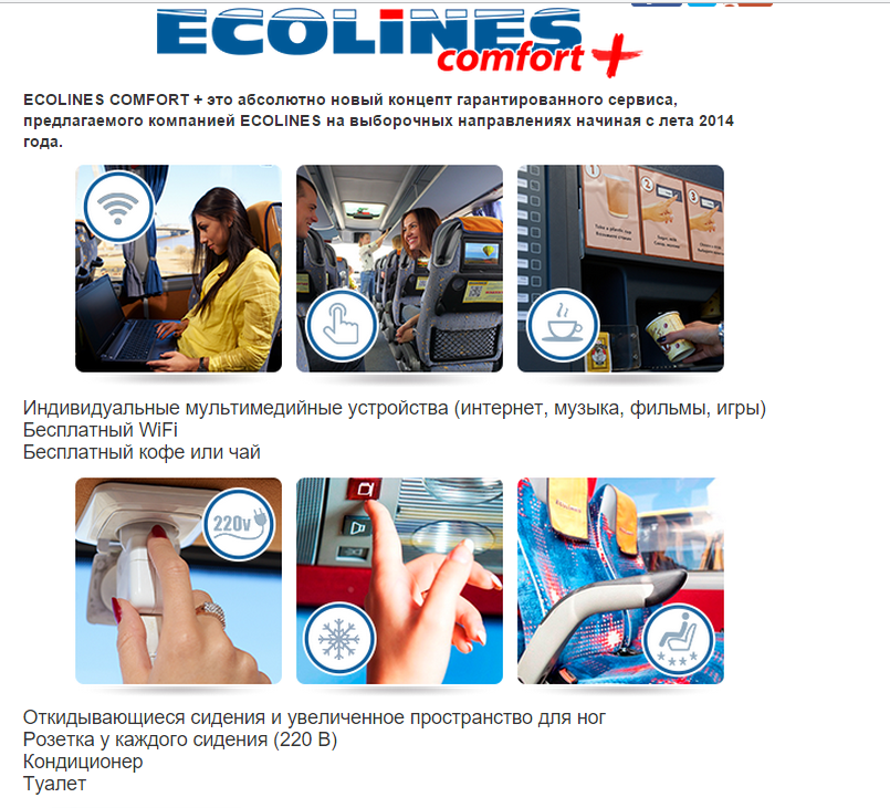 Рейсы в данном направлении обслуживают хорошо зарекомендовавшие себя компании Еcolines и Eurolines.