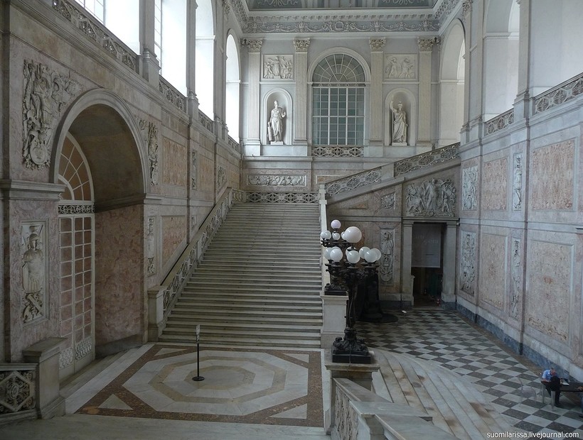 Обязательно загляните в Неаполь! Я как любитель дворцов советую посмотреть вам такие прекрасные сооружения: Кастель Сант-Эльм, Палаццо-ди-Каподимонте, Кастель-дель-Ово и Королевский дворец в Неаполе. Последний дворец меня впечатлил больше всего! Возможно снаружи он не выделяется чем-то особенным. Но внутри он прекрасен. Я с удовольствием бродила несколько часов по замку, представляя какая там атмосфера была лет так 200 назад. Необыкновенной красоты лестницы, мозаика на стенах, оформление колон – все очень красивое и переносит в атмосферу былых времен. Рассказывать можно много, но лучше увидеть воочию.