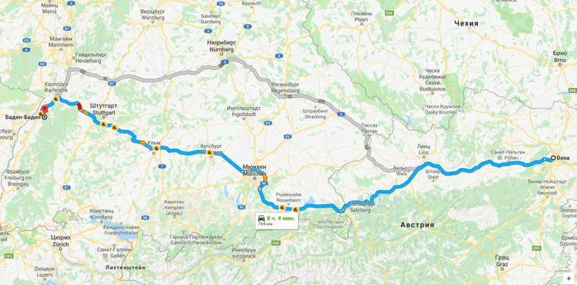 И еще, маршрут в Баден-Баден будет пролегать через платные автомагистрали. Точную сумму сбора вы можете узнать на этом сайте.