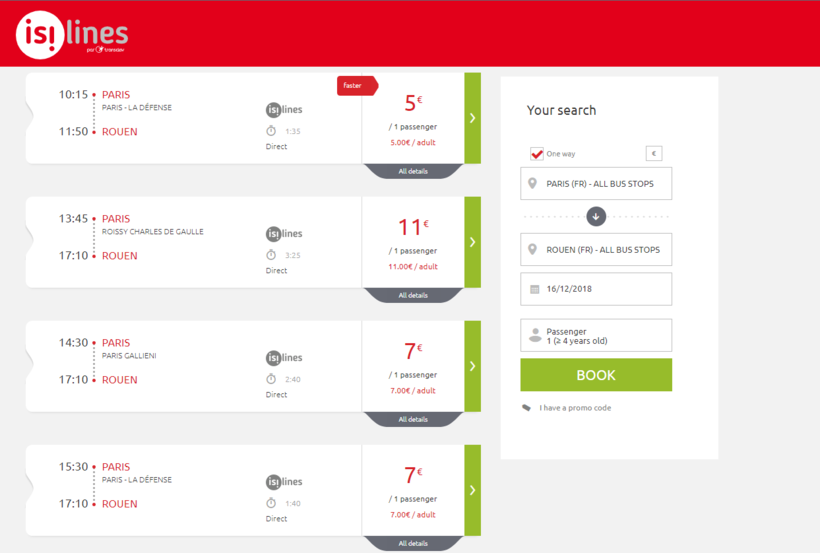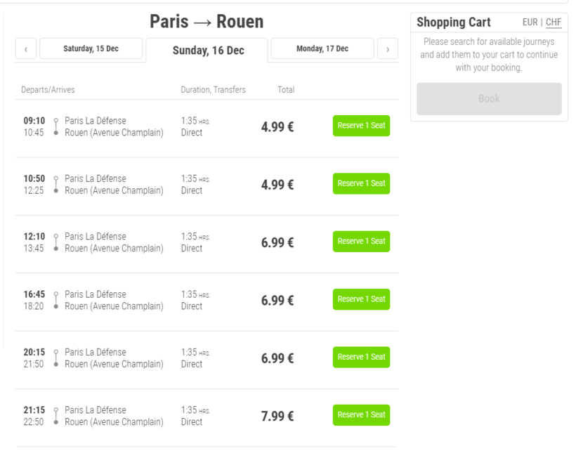 - Ouibus предлагают нам купить билет всего за 5.00 евро.