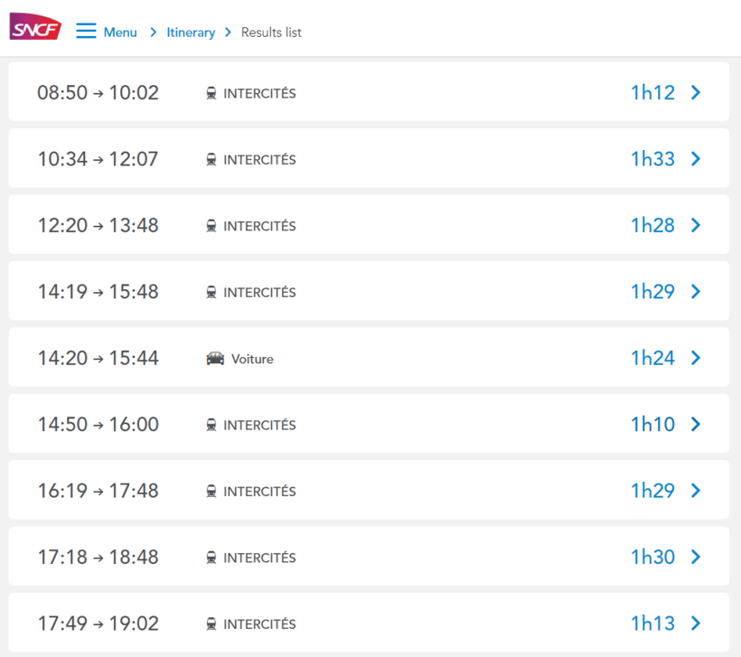 На официальном сайте Ж/Д перевозчика SNCF вы можете посмотреть расписание и оформить свою поездку.