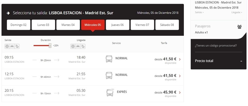 Проездной документ в Мадрид можно купить в кассе автостанции Лиссабона или на сайте перевозчика Avanza.