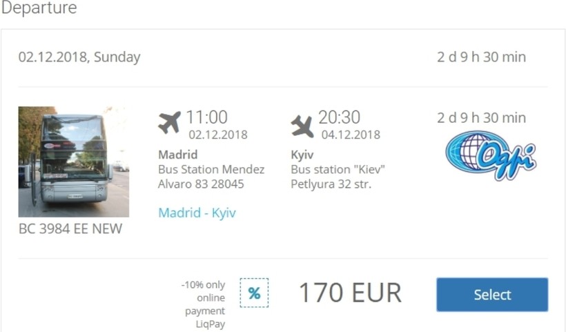 Такими способами можно оформить и билет на автобус с испанской столицы в украинскую — либо в кассе вокзала, или на веб странице компании Odri.